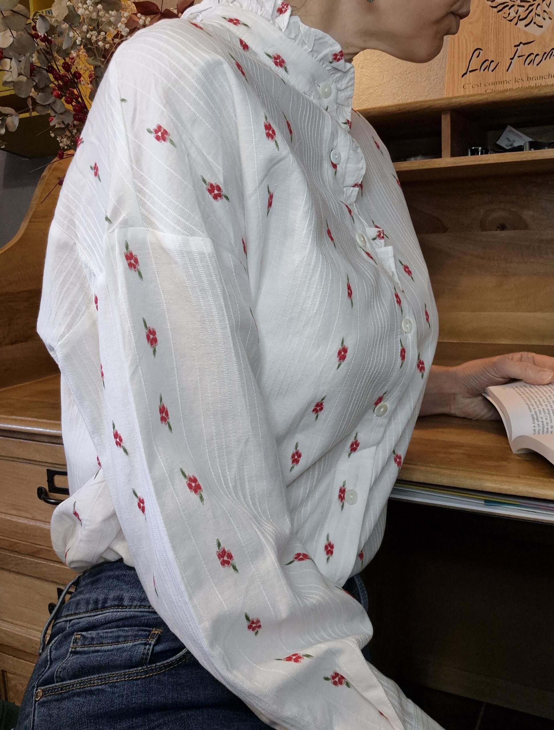 Apportez une touche de charme à votre collection avec cette magnifique blouse à carreaux, sublimée par ses détails brodés et sa délicate boutonnière.