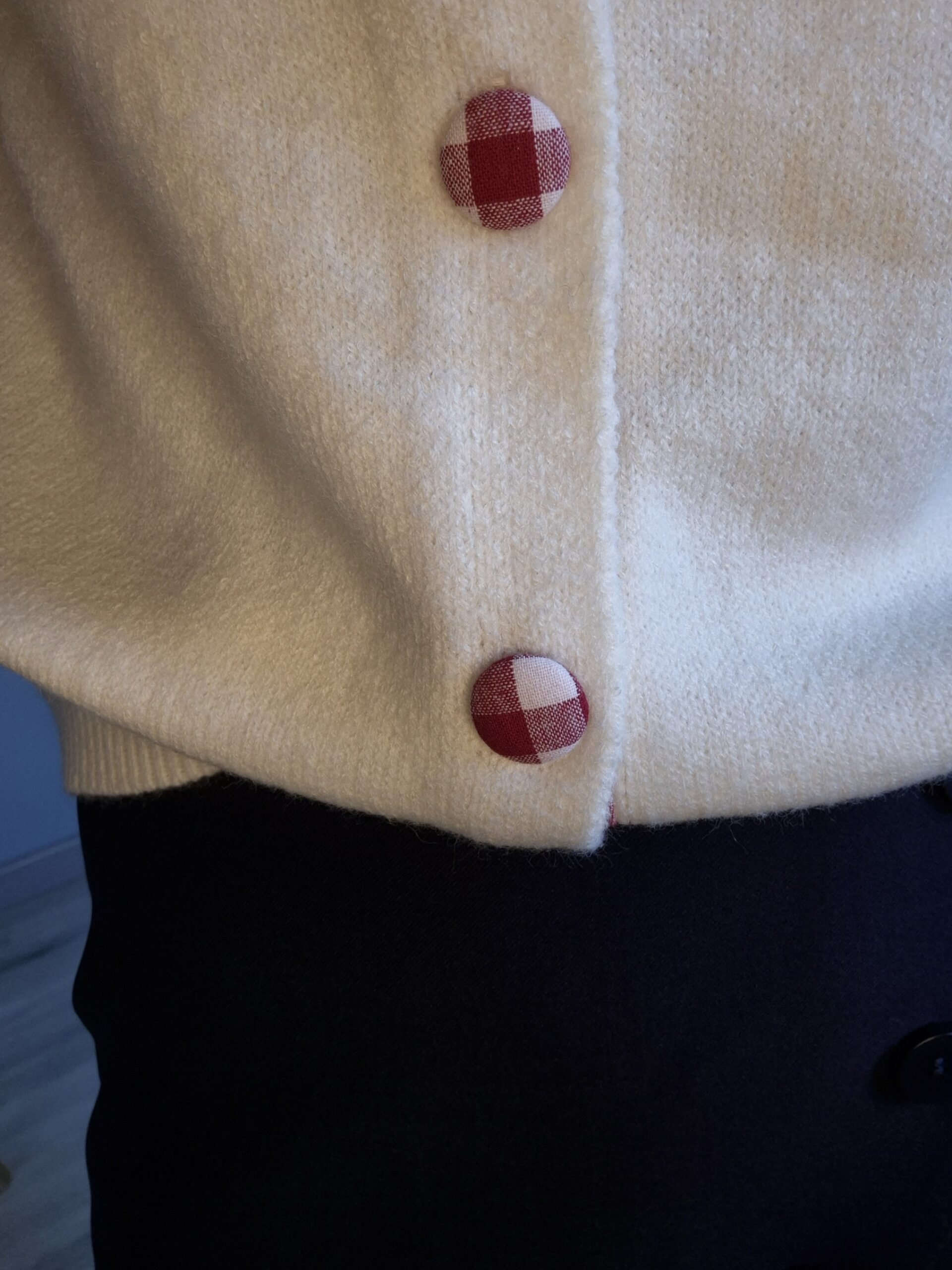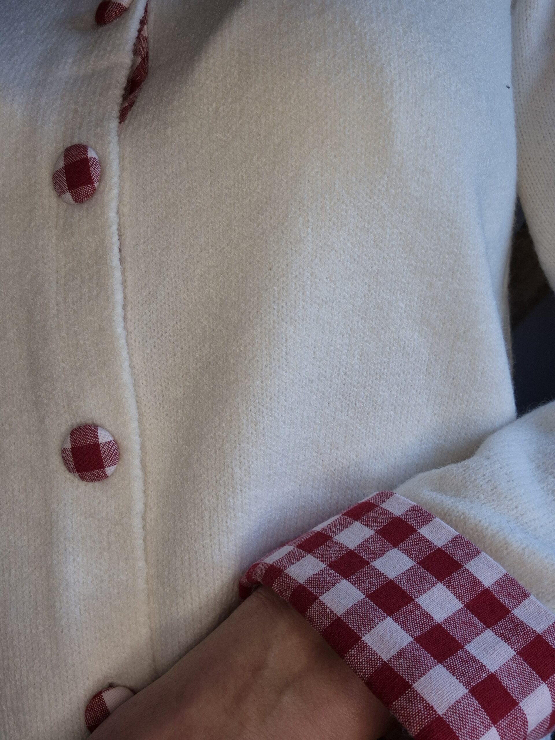 Les manches ornées de motifs vichy apportent une touche d’élégance et d’originalité, tandis que les boutons soigneusement conçus ajoutent une finition sophistiquée.
