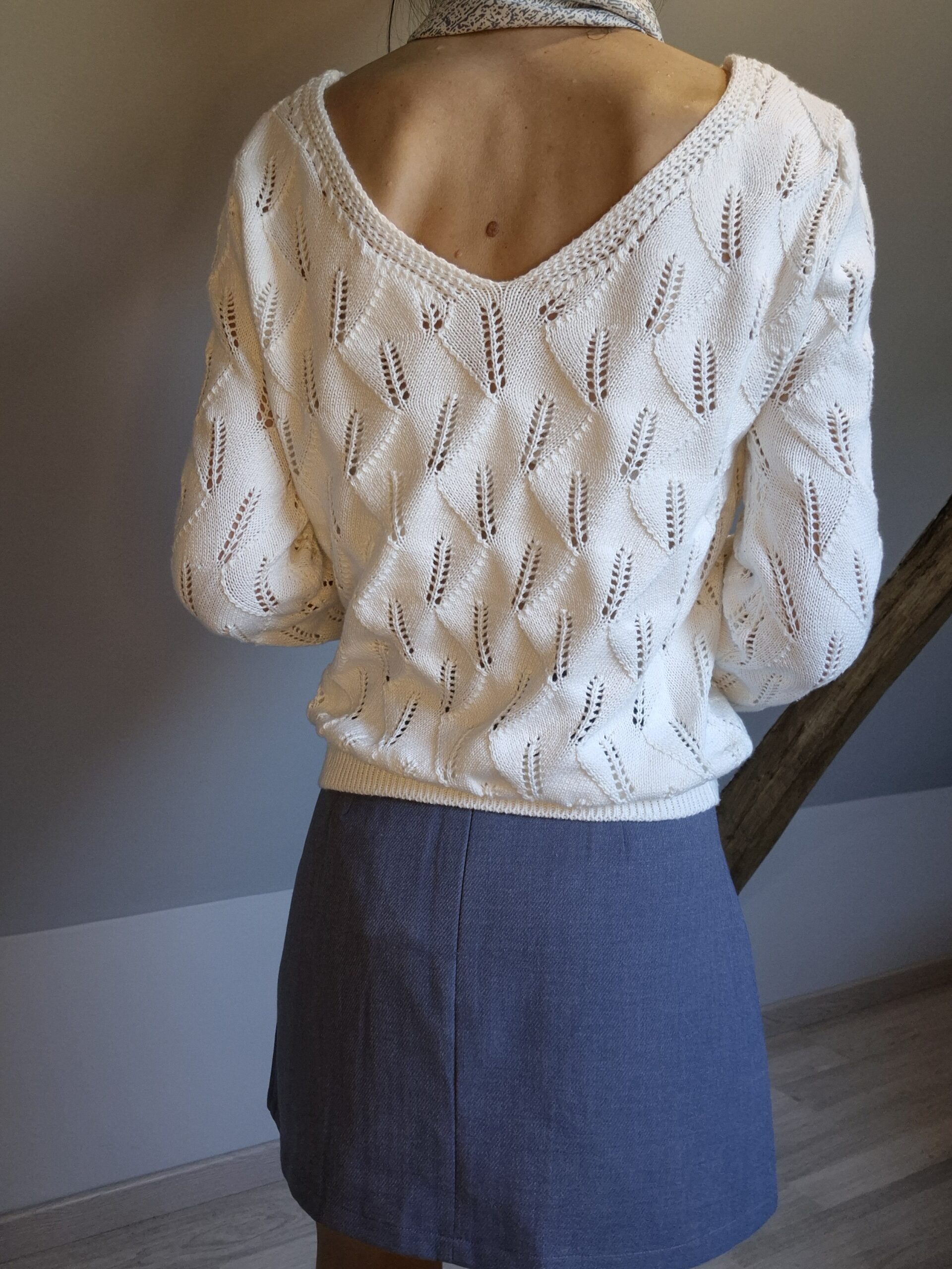 Avec son décoletté flatteur dans le dos, son tricotage fantaisie et son blanc lumineux, il sera parfait pour accompagner toutes vos tenues.
