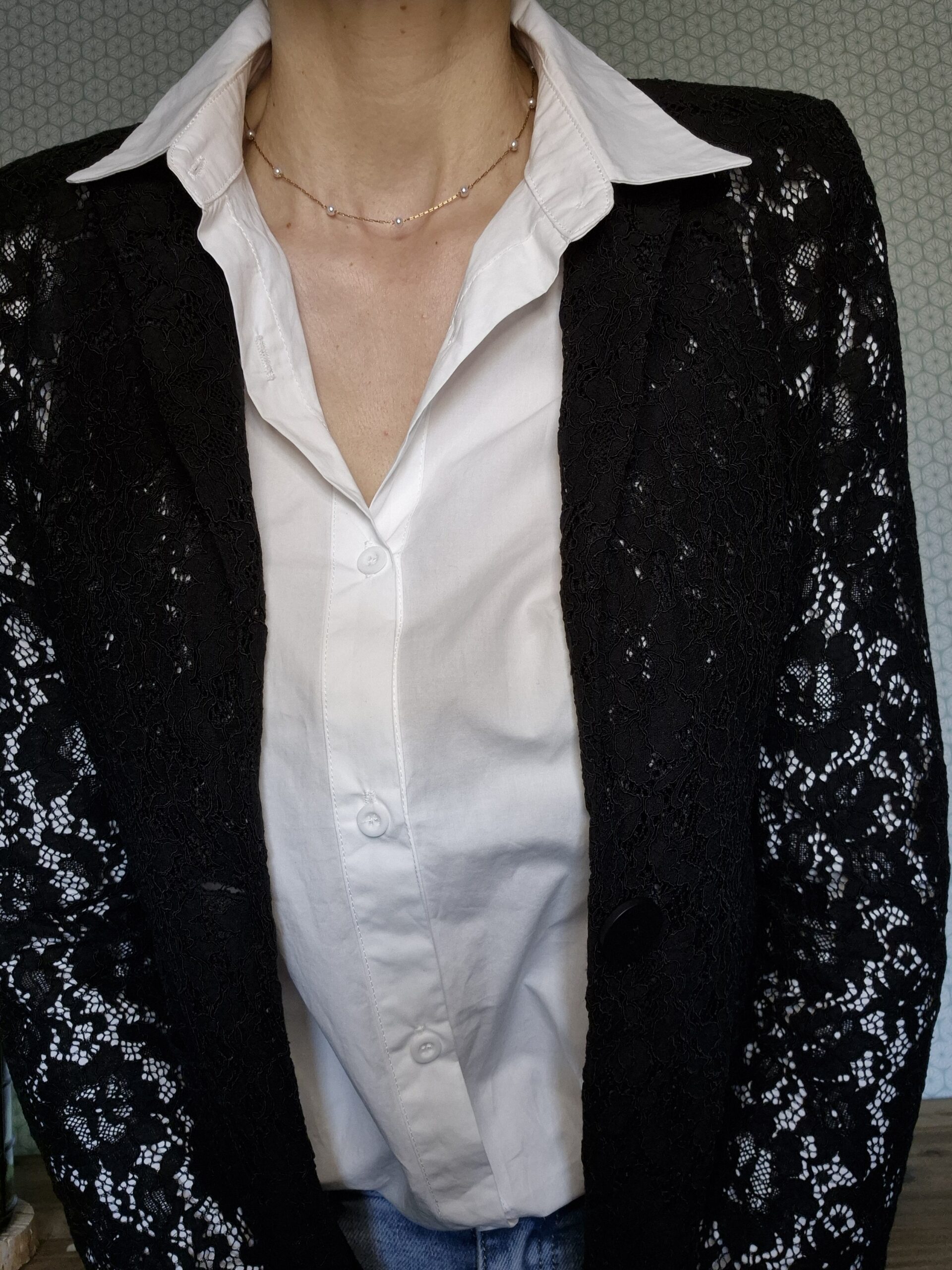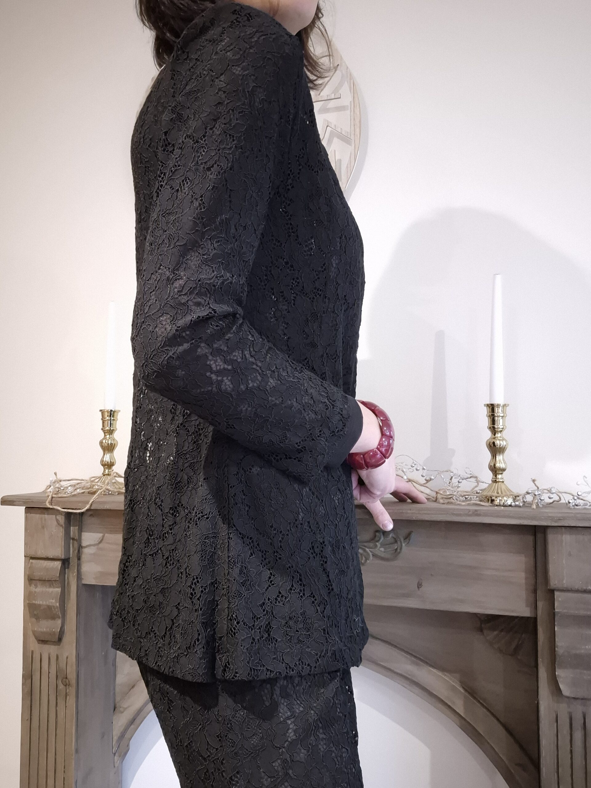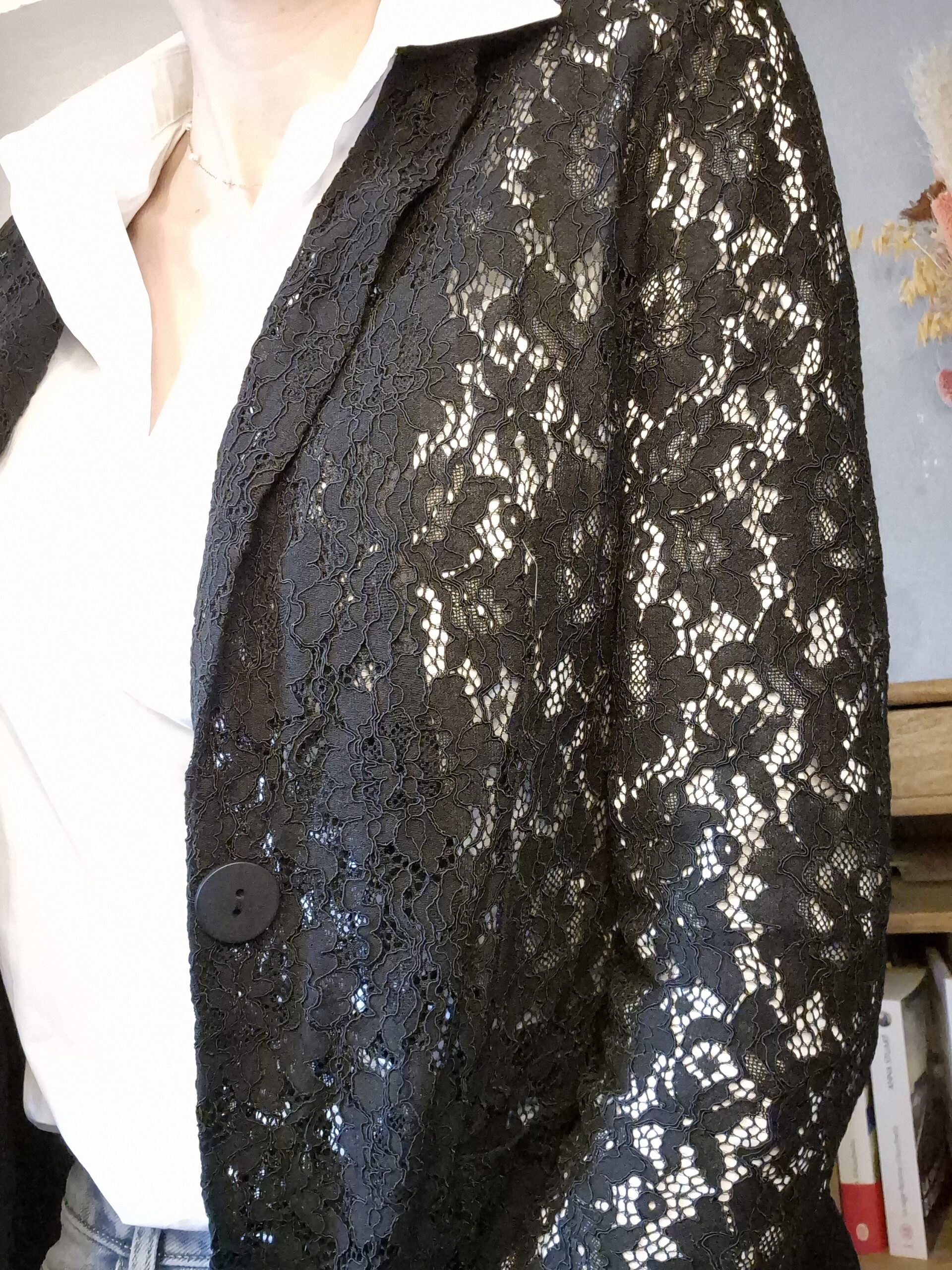 Apportez une touche d’élégance à votre garde-robe avec cette veste noire délicatement embellie par de la dentelle.
