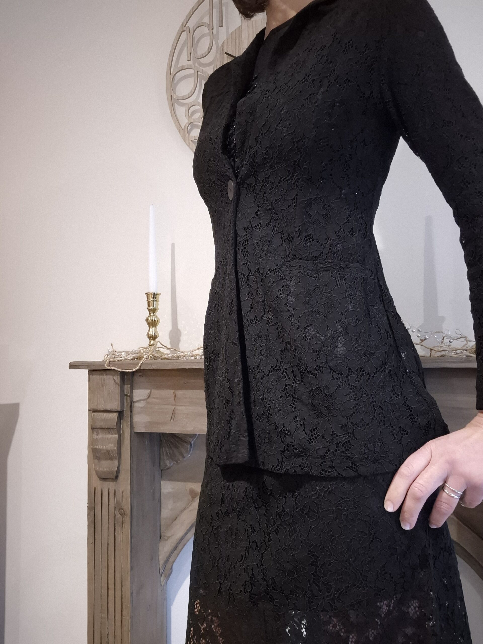Pour un total look élégant et coordonné, associez cette veste à notre jupe Jade, qui reprend les mêmes détails de dentelle pour un style harmonieux et chic.